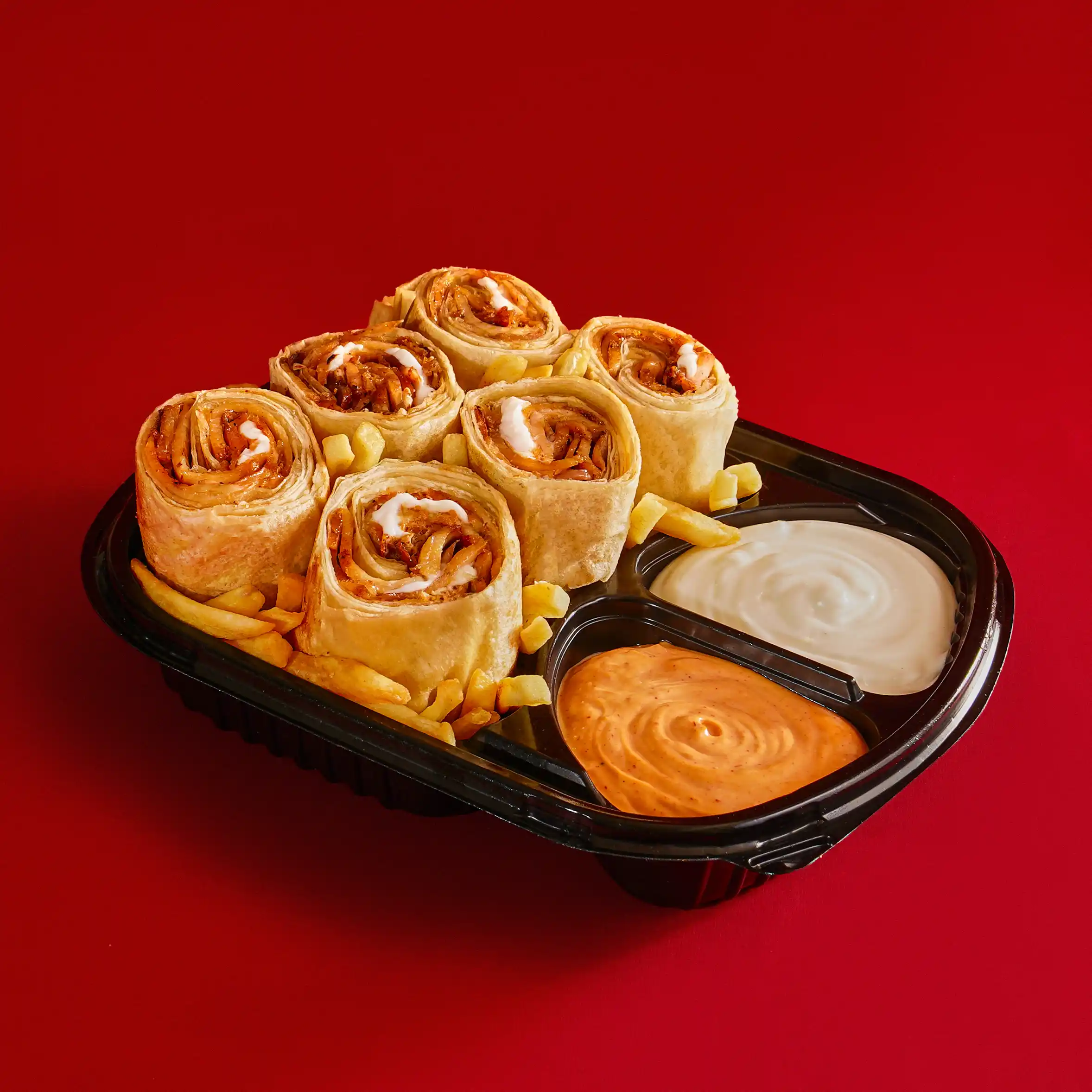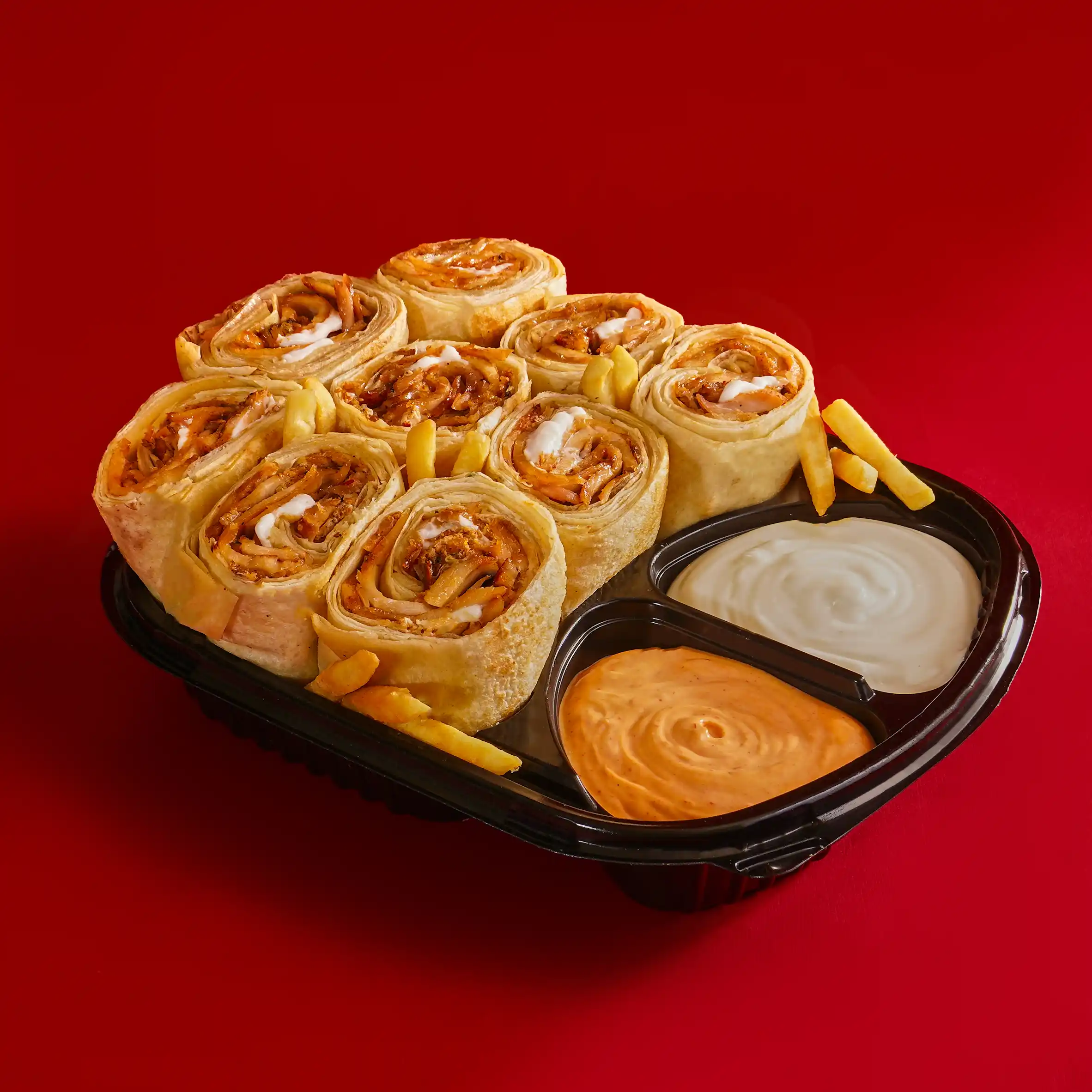 2 سيخ شيش طاووق + 4 قطع كريسبي + 6 قطع شاورما فراخ عربي + بطاطس + 2 كبيبة + 2 سمبوسة + عيش + ثومية + ثومية سبايسي + مخلل