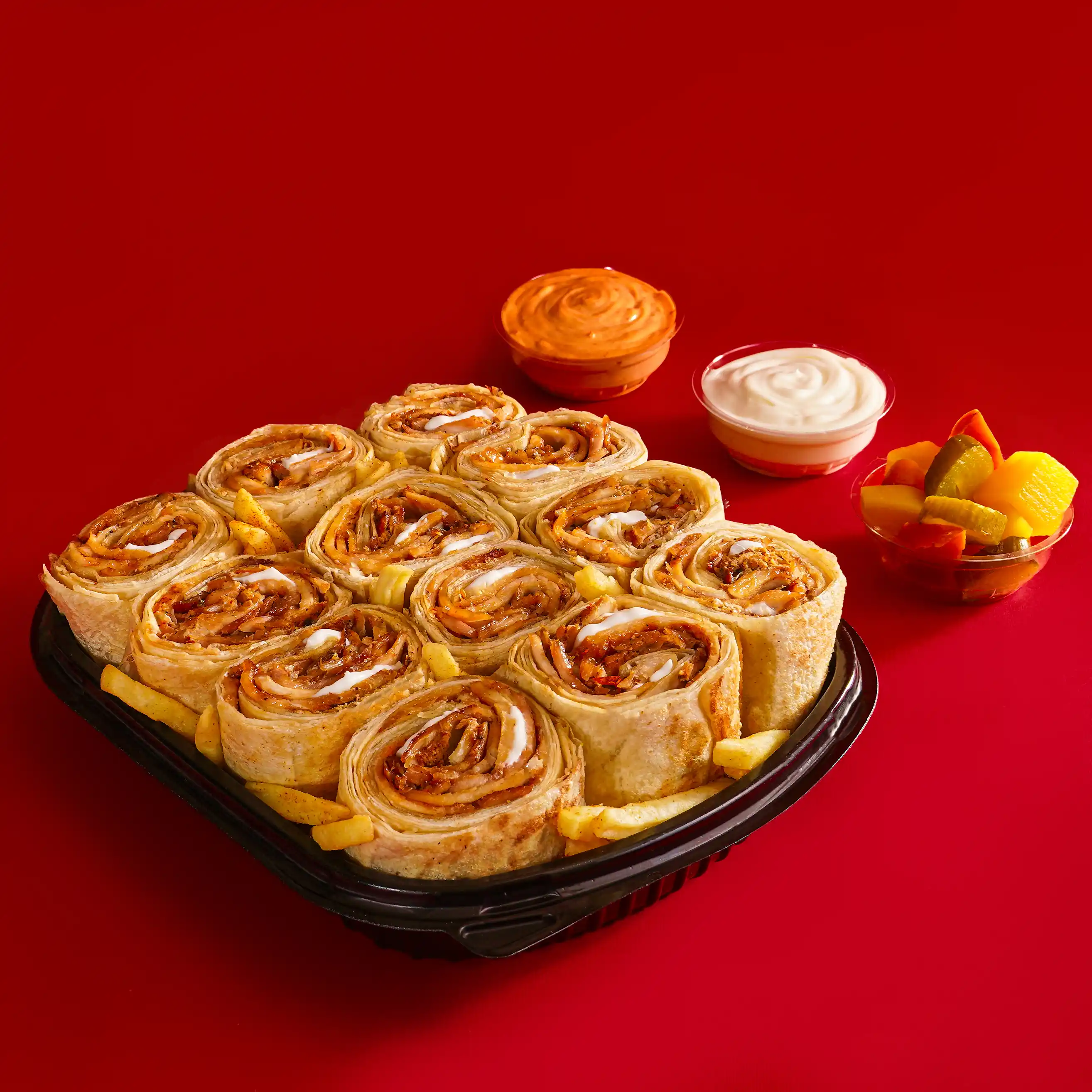 30 قطعة شاورما + بطاطس عائلي + ثومية + صوص سبايسي + مخلل