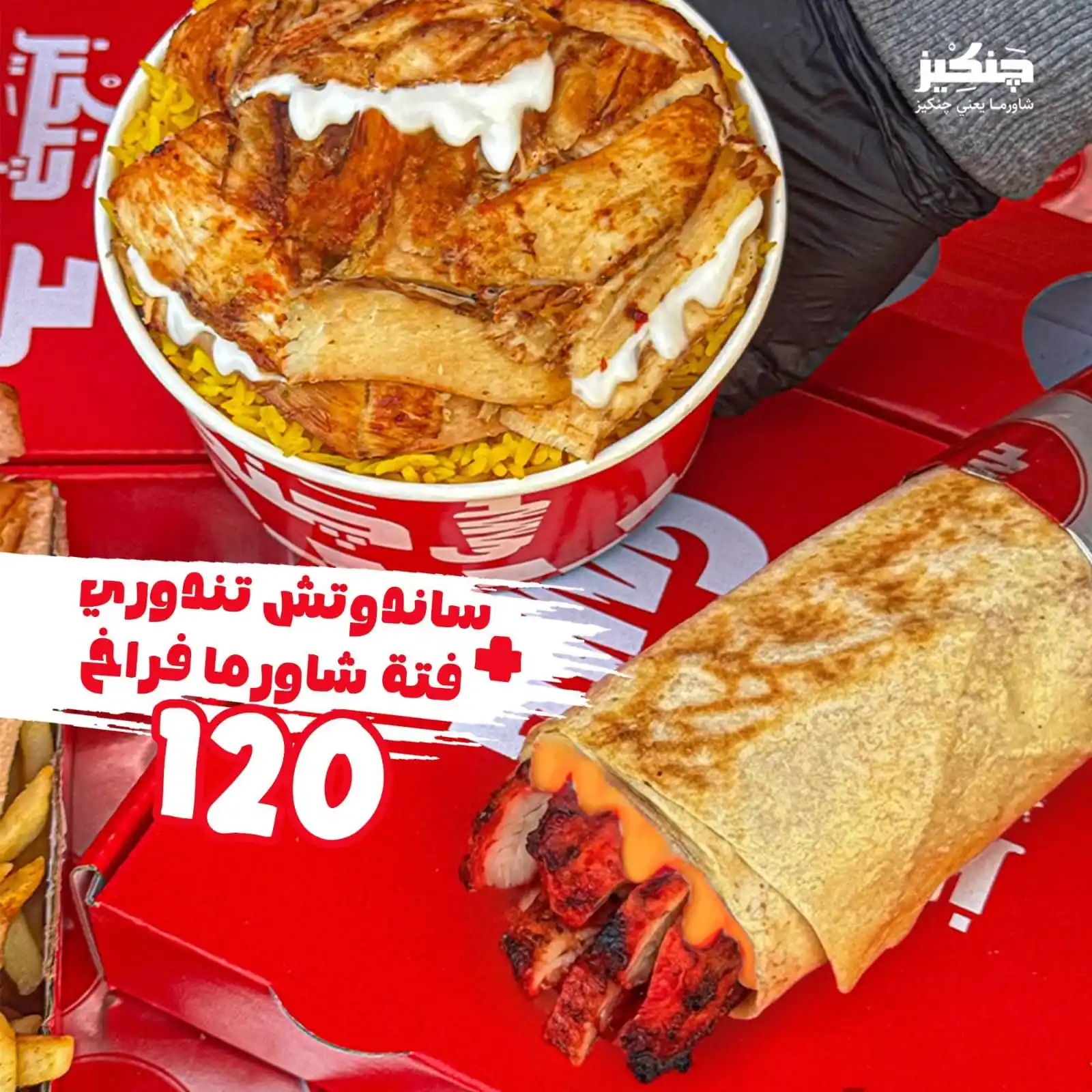 فتة شاورما فراخ+ ساندوتش شاورما تندوري